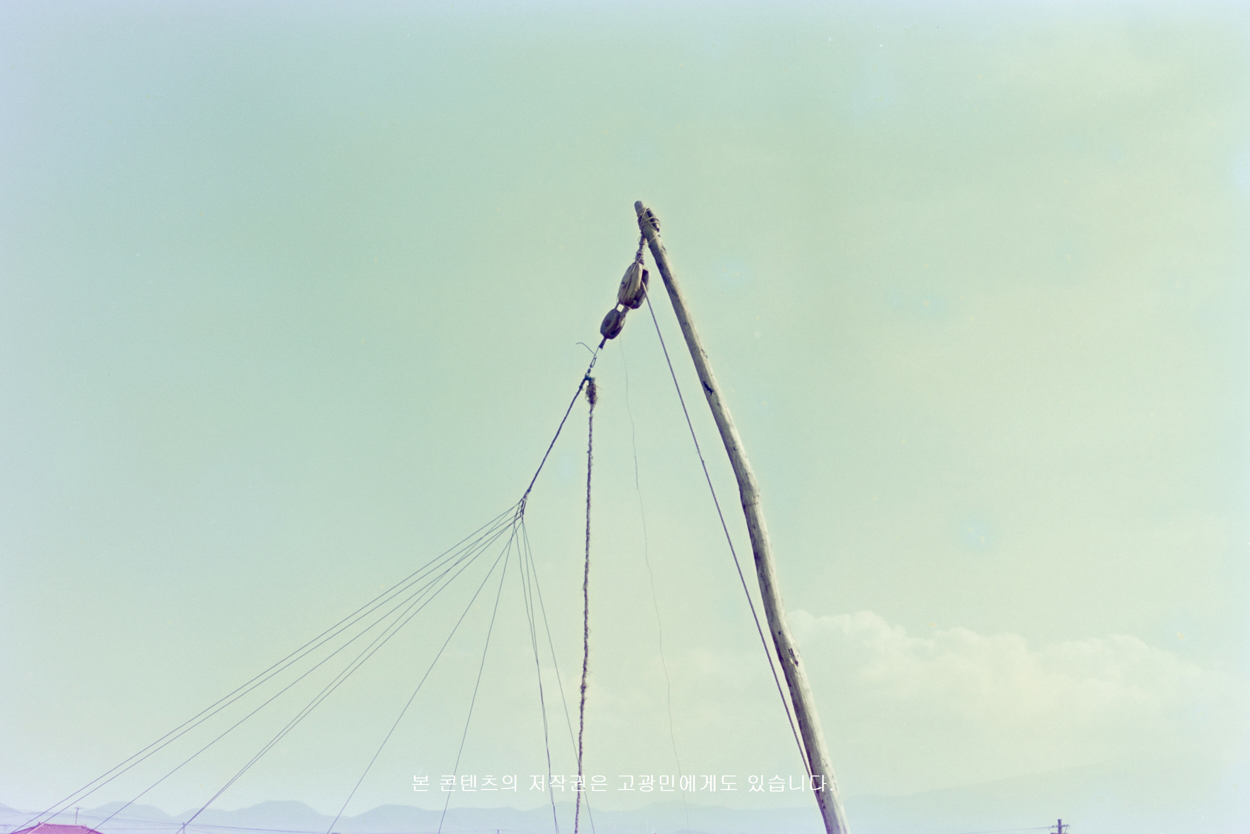 *개요 : 이 마을 강하림(1895년생, 남) 씨와 한평생을 같이 하였던 강 씨의 ‘테우’와 ‘자리(자리돔)’ 잡는 어구들이 인하대학교박물관으로 팔려나갈 준비를 서두르고 있다. ‘자리(자리돔)’를 잡는 그물을 도르래 줄에 묶어놓았다. 자리그물에 묶인 여러 개의 줄을 ‘버릿줄’이라고 한다.