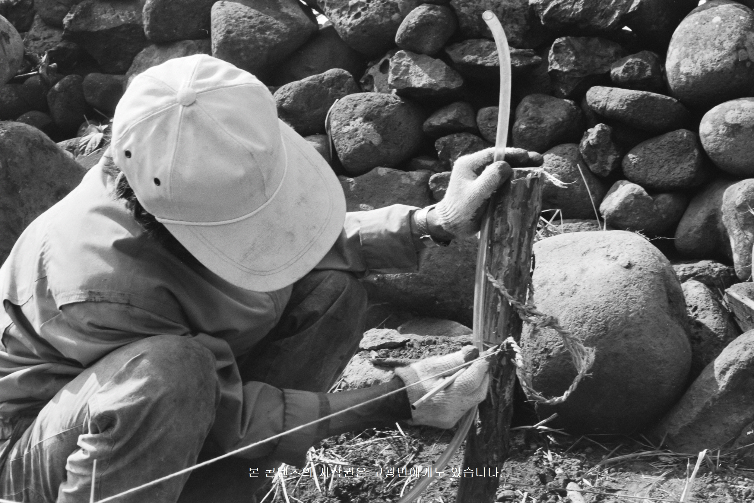 *개요 : 물수평기 대신 고무호스에 물을 담고 수평을 잡고 있다.