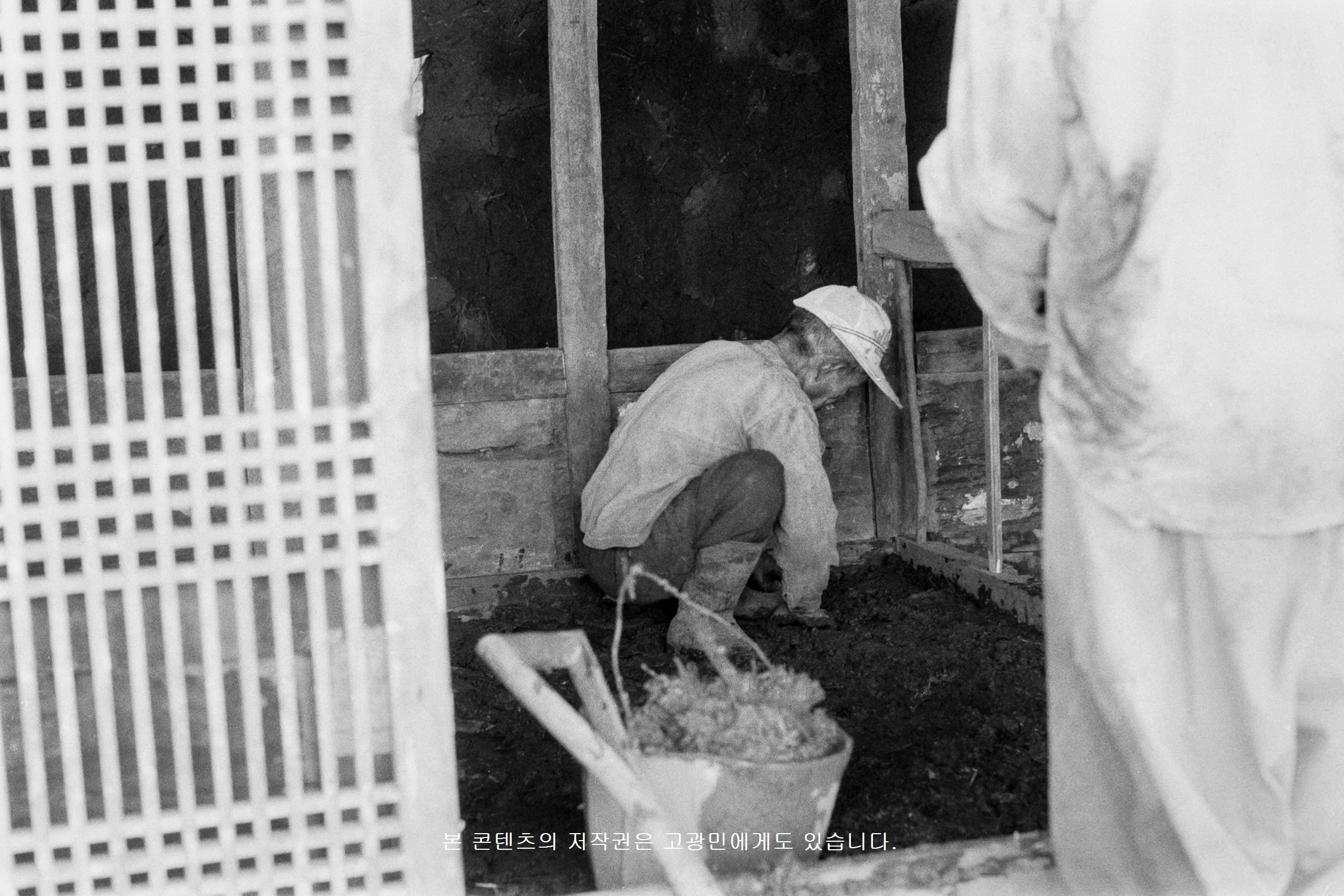 고광민 민속 사진 - 구들돌 위에 흙 바르기