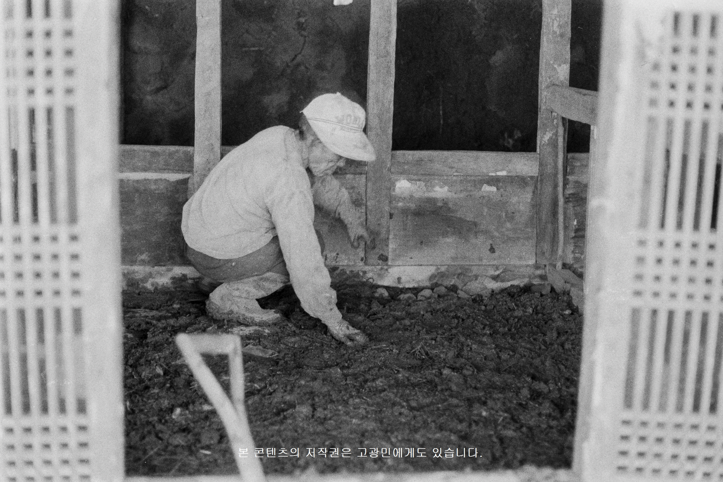 고광민 민속 사진 - 구들돌 위에 흙 바르기