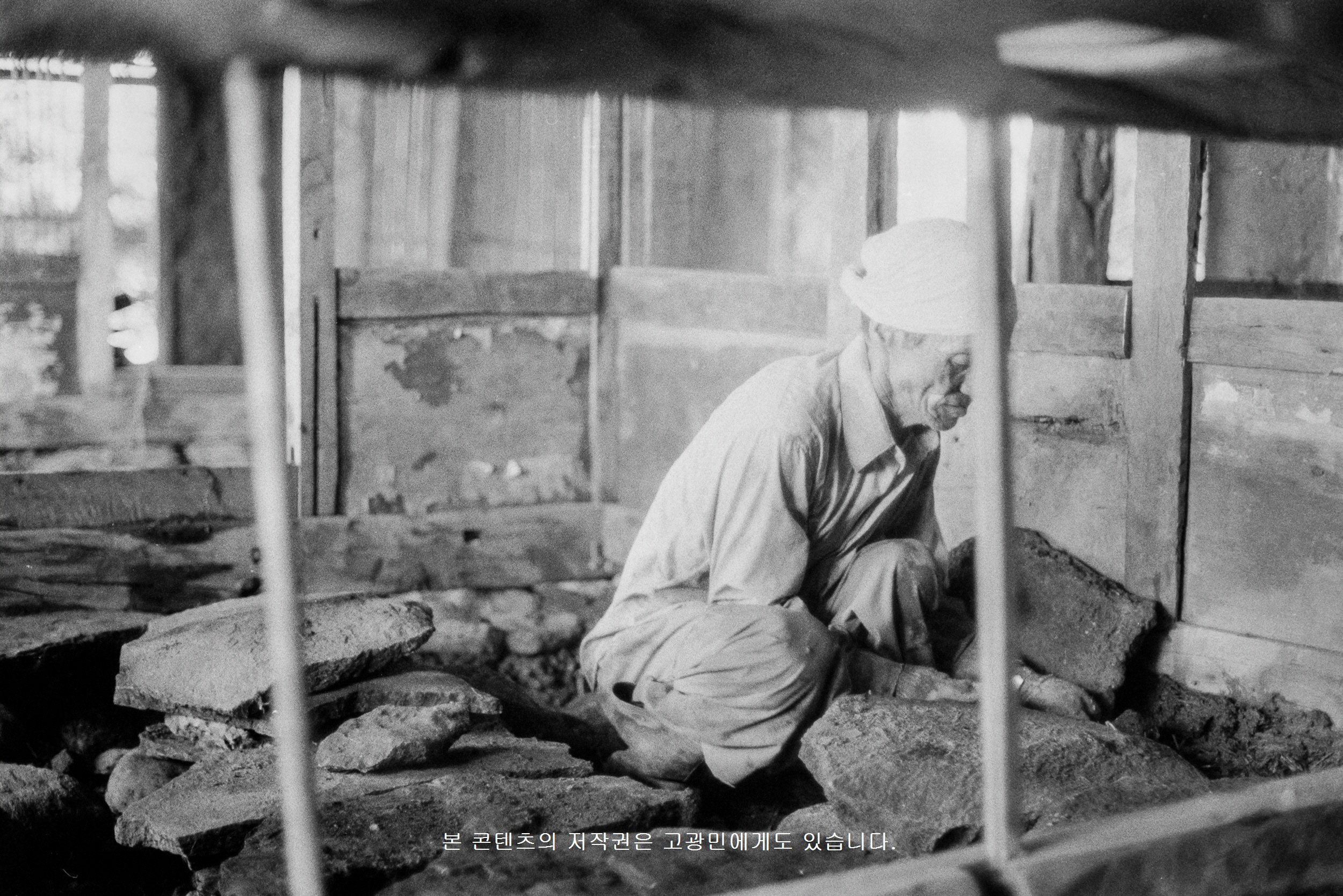 *개요 : 제주도 전통 민가를 복원하는 모습이다. 집의 공간을 구들장을 놓아 방을 만들고 있다. 이런 일을 ‘구들 놓는다’고 한다. 구들장은 방구들에 난방의 방법으로 깔아놓는 넓고 얇은 돌이다. 구들장을 달리 ‘구들돌’이라고도 한다.