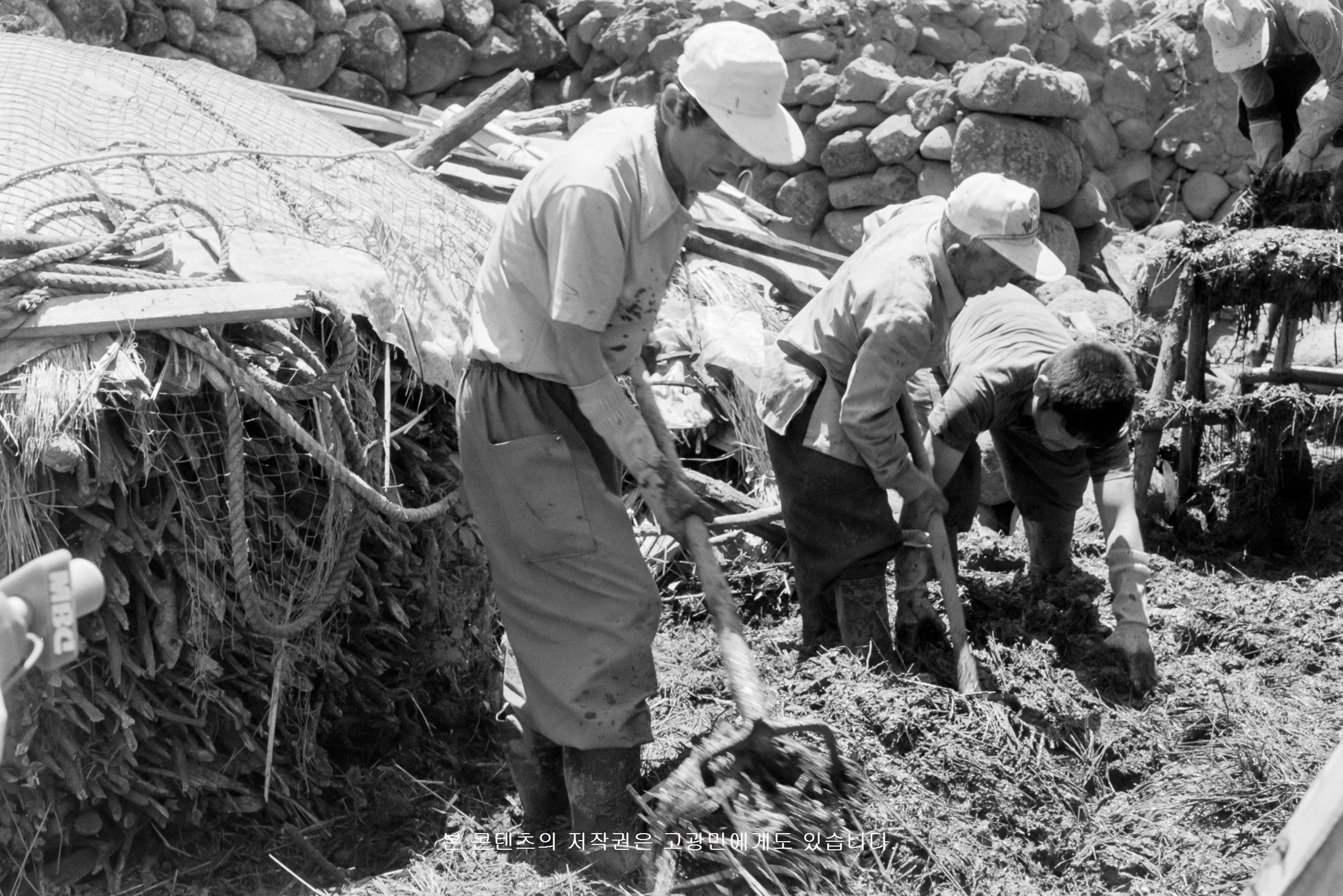 고광민 민속 사진 - 초가지붕 흙 이기기