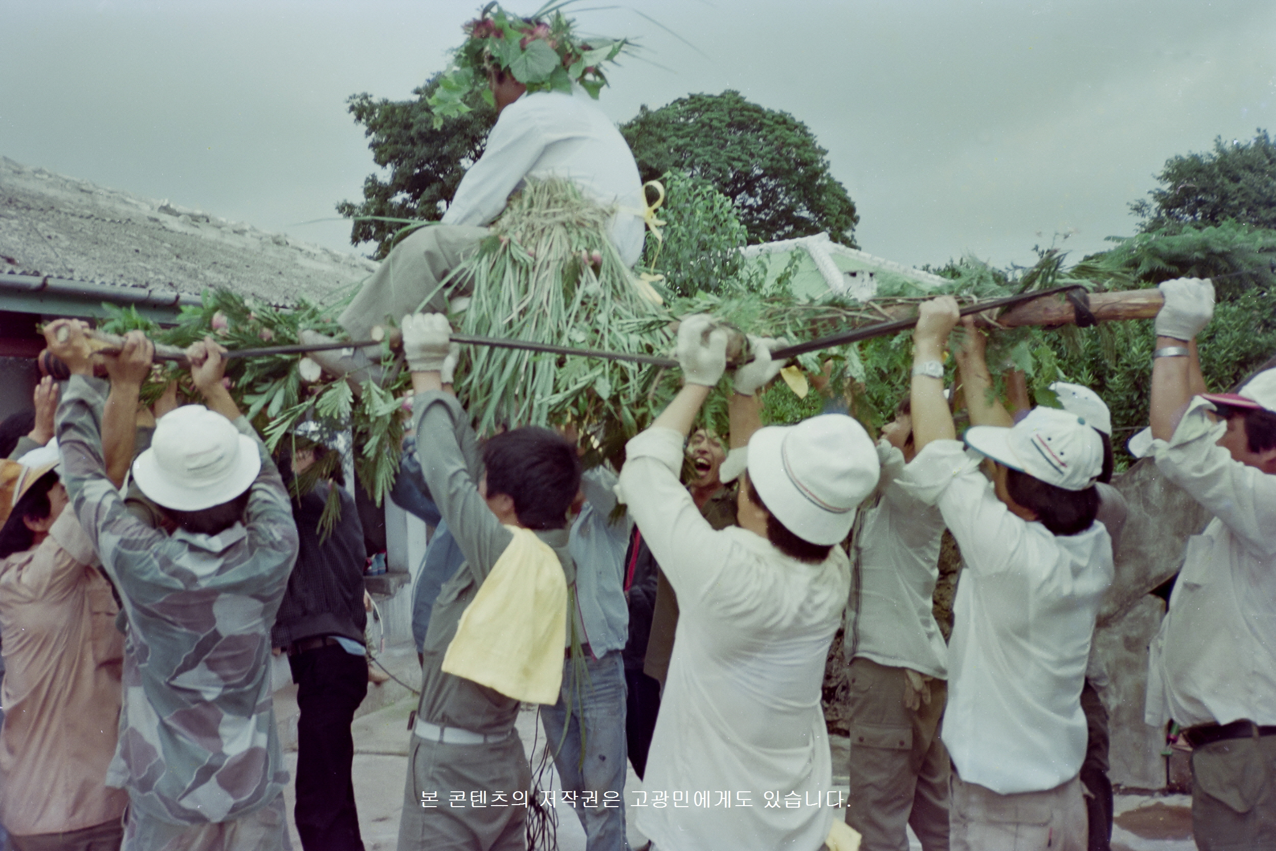 *개요 : 사또놀이를 하는 동안 가마꾼들이 사또를 헹가래치고 있다.