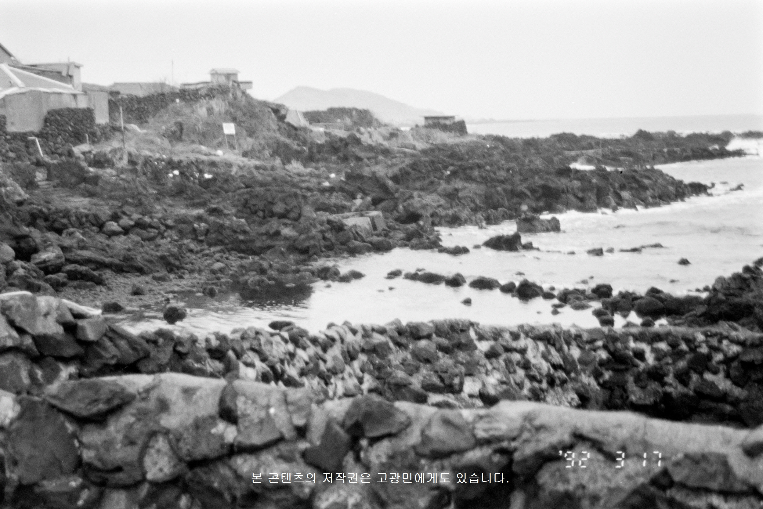 *개요 : 제주시 삼양1동(설개)에 있는 ‘동카름성창’에서 서쪽 갯가 모습이다. 가까운 곳에 있는 ‘도고리원’의 ‘원담’이 보인다. ‘도고리원’은 삼양1동 ‘서흘개’ 공동어로집단 소유의 원이다. 전체적인 원의 모양이 ‘도고리(매함지)’를 닮았다고 하여 원의 이름을 ‘도고리원’이라 한 것이다. 살짝 만을 이룬 곳에 인공으로 담을 쌓았는데, 현재 그 규모를 헤아릴 수 없을 만큼 헝클어져 흔적만 남아 있는 상태이다. 그 흔적으로 짐작컨대, 담의 형태는 살짝 구부러진 모양이고, 그 길이는 23m 가량 된다. ‘원담’을 제외한 둘레는 끊어 자른 듯한 바위로 둘러쳐져 있다. 원 안에는 ‘가막작짓물’과 ‘우무숫물’이라는 담수가 솟아 흘러 여러 어족들이 몰려들기에 좋은 조건을 이룬다. 현재 완전히 매립되어 수원지와 유사한 상태가 되고 말았다.
