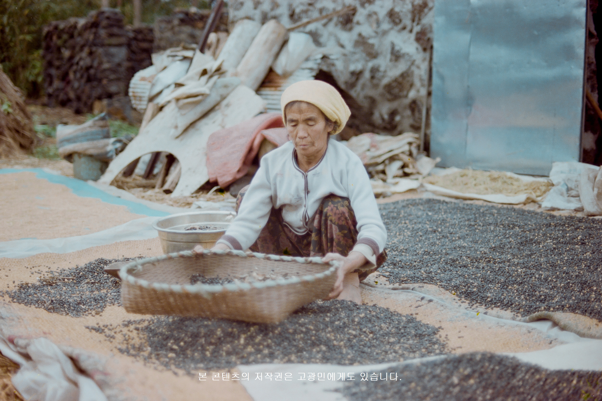 고광민 민속 사진 - 얼멩이로 콩 쳐내기