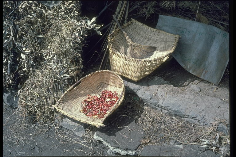 * 개요 : 골채에 빨간 고추를 넣고 말리고 있다. 또 하나의 골채에는 갈대 빗자루가 놓여 있다. 골채는 다목적 운반구로 거름과 씨앗을 뿌리는데 쓰였다.