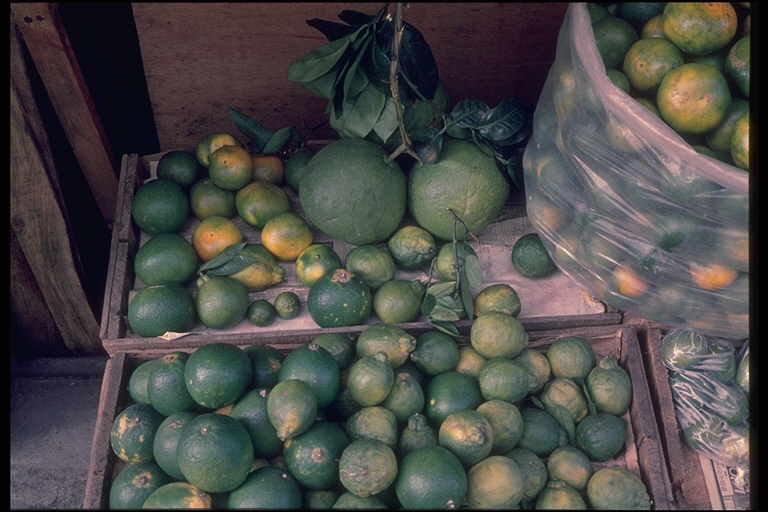 당시 사진을 찍은 일본 학자 이토 아비토(伊藤亜人) 선생은 재래종 감귤은 전부 없어질 것 같아 의식적으로 기록하기 위해서 사진을 찍었고, 또 손님이 작은 귤을 사서 그 자리에서 먹고 난 후 껍질을 가게에 놓고 가서 왜 그런지 물었더니, “감귤 껍질은 감기에 효과가 있다”고 말했다고 한다. 감귤 껍질은 약재용 진피로 많이 이용했던 것으로 보인다.