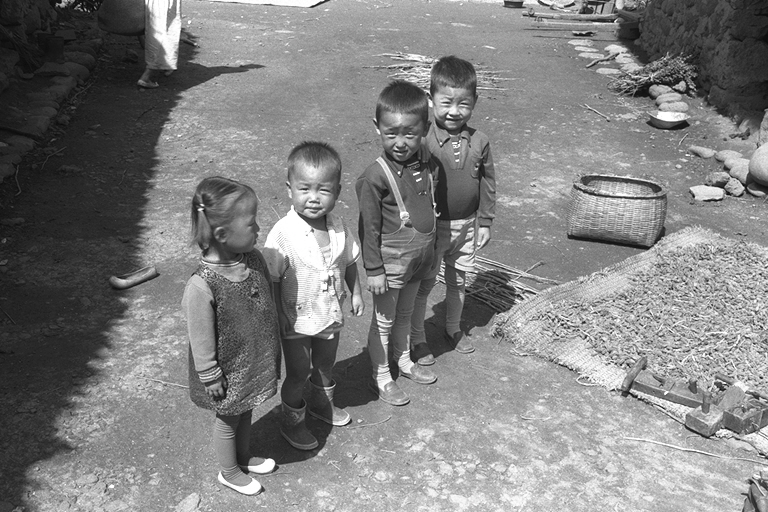 * 개요 : 서너 살쯤의 귀여운 어린 남녀 아이들이 나란히 서서 카메라를 응시하고 있다. 거리에는 멍석 위에 무언가를 말리고 있고, 말릴 것을 담아 왔던 구덕이 놓여 있다. 구덕은 음식을 담고 운반할 수 있게 대나무로 만든 바구니로 채소를 담은 것을 ‘ᄉᆞᆼ키구덕’, 떡을 담는 것을 ‘떡구덕’이라 하여 사용 용도에 따라 명칭을 달리했다.