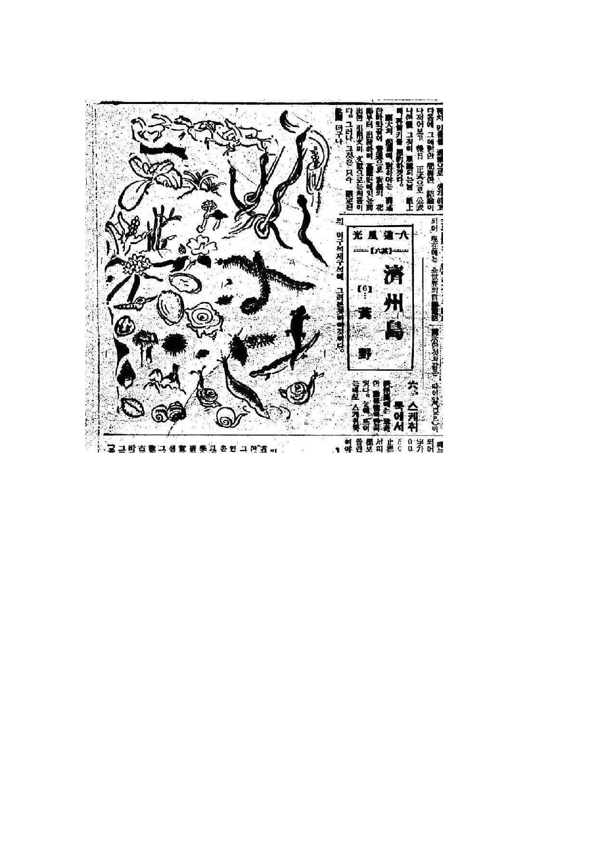 제주도(濟州島)에는 진기(珍奇)한 동식물(動植物)이 만히 잇다. 눈에 뜨이는 대로 스케치뿍의 이 구석 저 구석에 그려본 것이 이것이다.