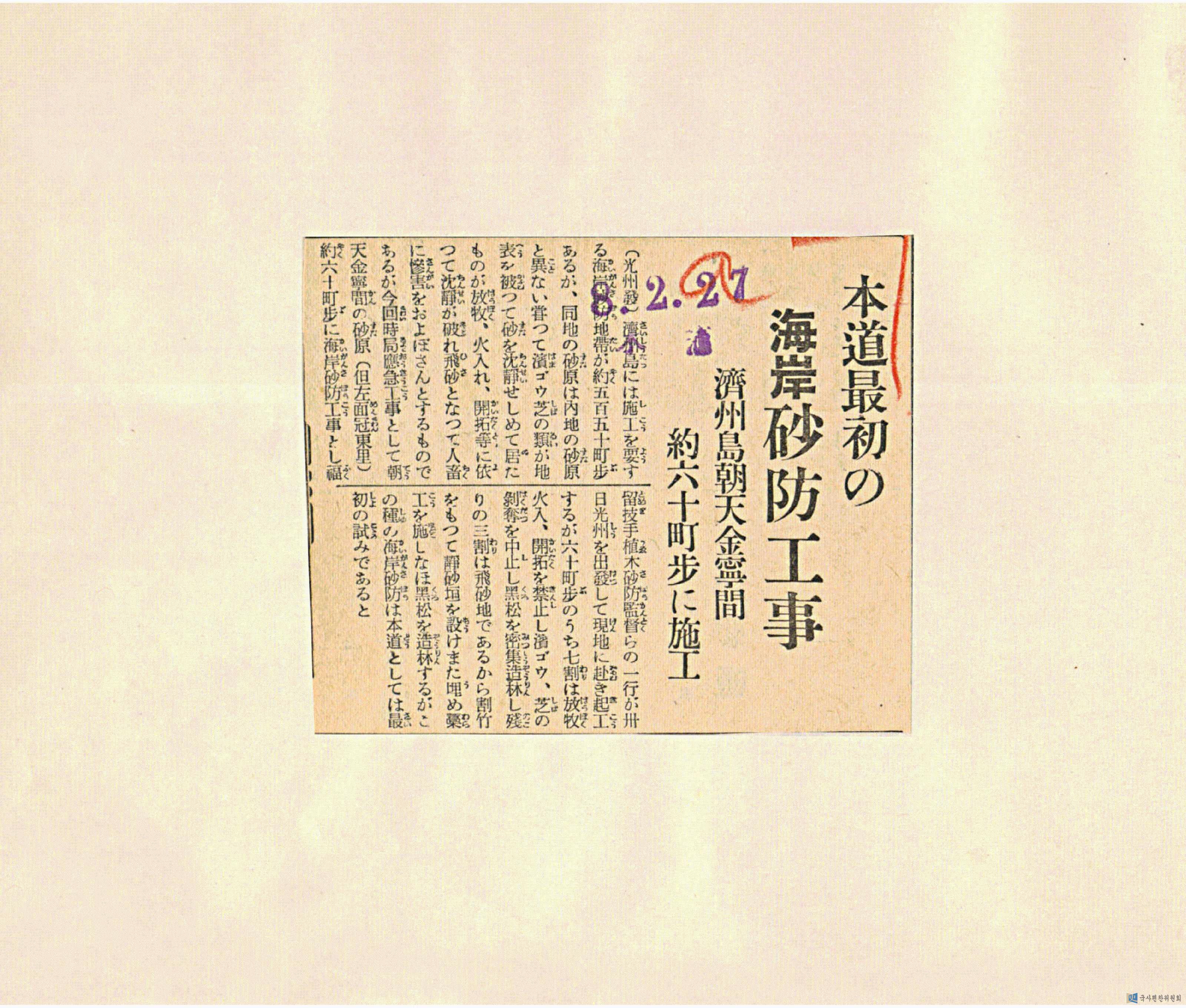 「일제사신문기사」본도 최초의 해안 사방공사 (本道最初の海岸砂防工事)