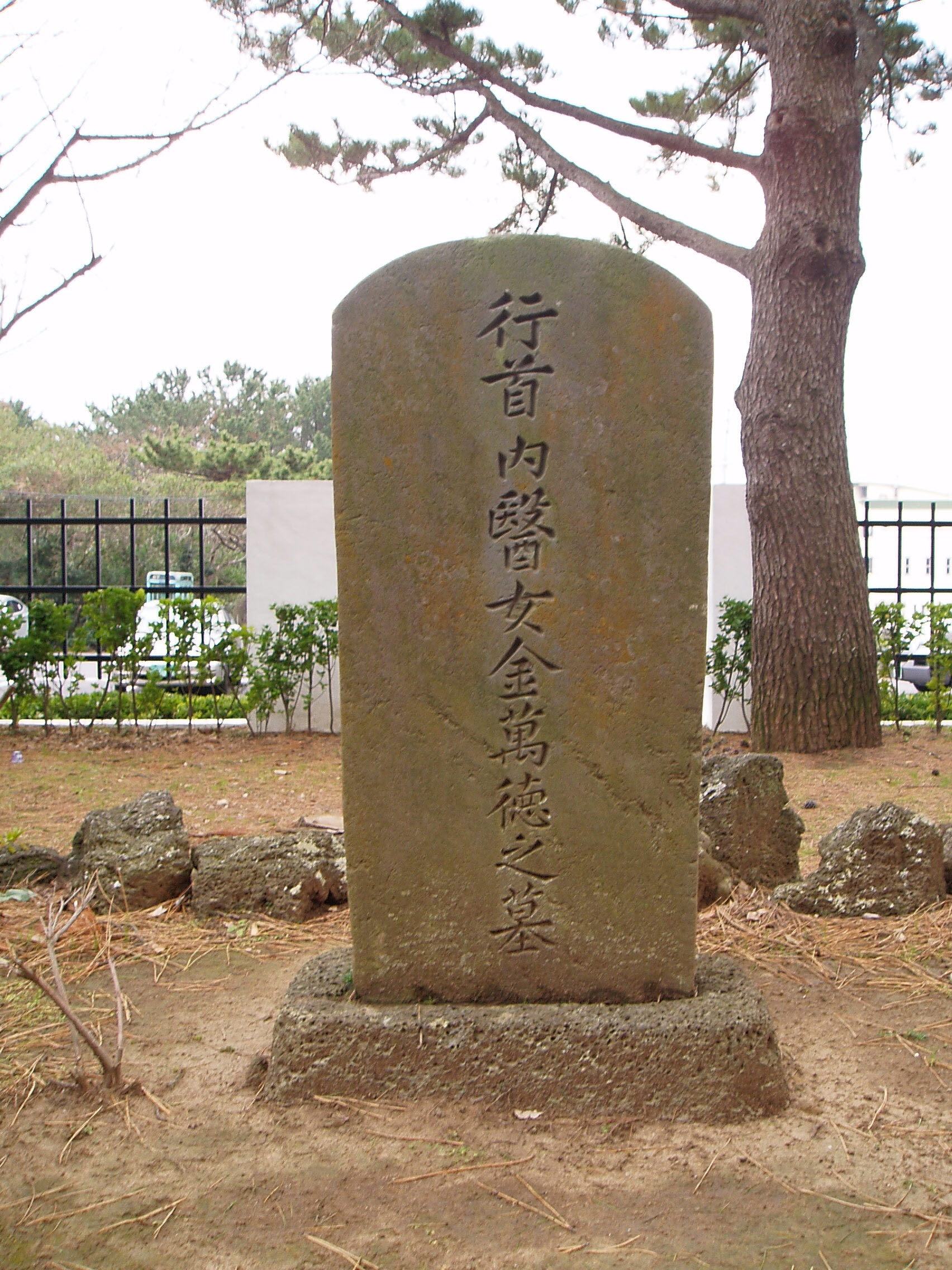 비문(후면) : 金萬德本金海 卽耽羅良家女也 幼而失恃 零丁貧苦 長而靡曼 托跡敎坊 縮衣損食 貲産滋大 歲在正宗祖乙卯 島人大飢 能傾財運穀 活命甚衆 牧伯賢之以聞 上問何所欲 對曰 願見京華金剛之勝而已 特命縣次續食 充內醫女寵頒 便蕃因給舖馬 遍覽萬二千峰 及其還鄕 大夫皆 章立傳 雖古賢媛 盖未嘗有 七旬顔髮 彷彿仙釋 重瞳炯澈 但天道無心 惜乎無兒 然養孫時采出自同氣 克遵遺志 永春香火 亦復奚憾 生于元陵己未 終于當宁壬申 十月卄二日 以翌月 窆于竝園旨 甲坐之原 上之卽位十二年 十一月二十一日立
